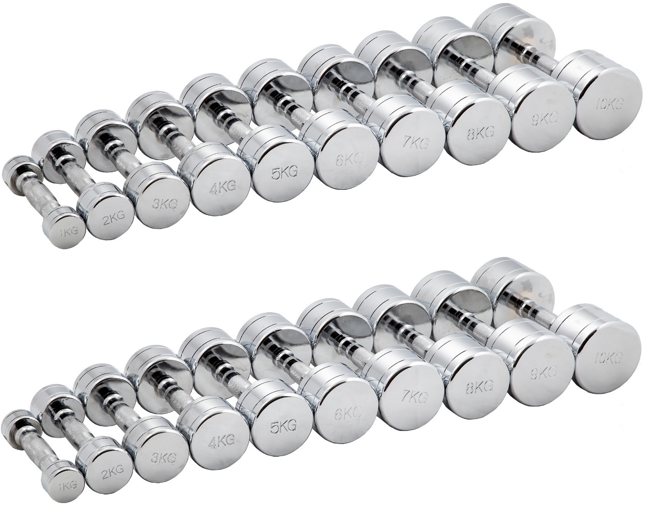 Набор гантелей хромированных 10 пар от 1 до 10 кг