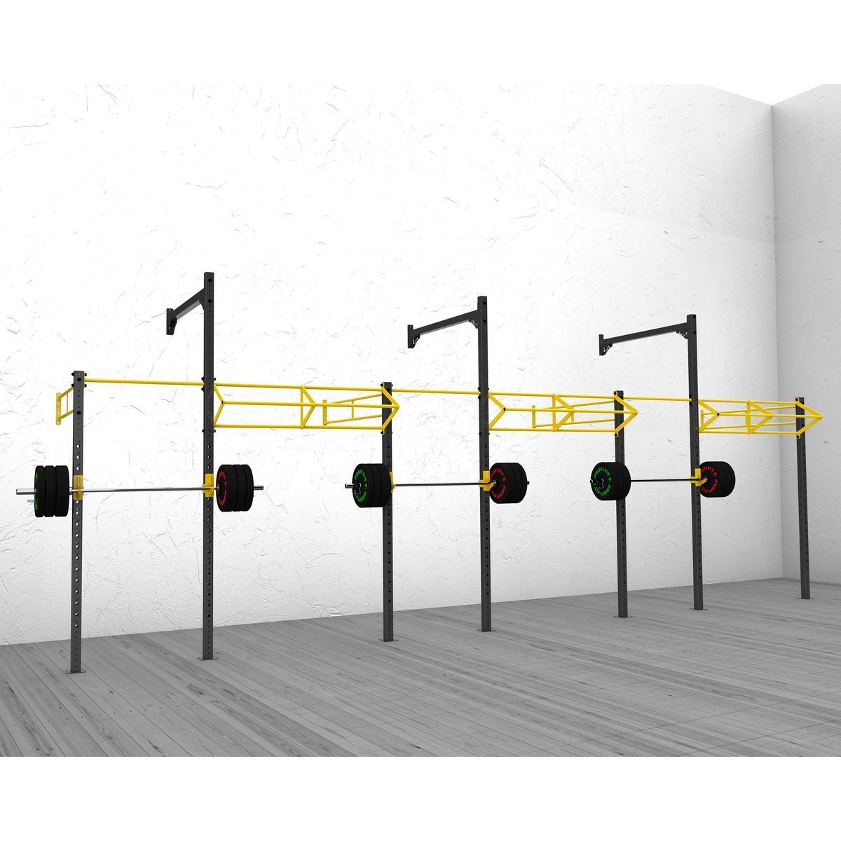 А0309 Функциональная рама 8700-1800.Функциональная рама для кроссфита – неотъемлемый атрибут любого crossfit-зала, универсальное решение необходимое для проведения комплексных тренировок и выполнения силовых упражнений.Основные элементы рамы выполнены из профильной трубы 80*80*3 мм,трубы d32 мм и листов металла 8 и 10 мм. Состав:Стойка перфорированная 80х80, ZSO-2680- 4 шт Стойка перфорированная 80х80, ZSO-3680-3 шт Перекладина двойная d32, ZSO-1800-4 шт Перекладина треугольная d32/32/32, ZSO-1800 -3 шт Перекладина одинарная d32, ZSO-1100-3 шт Балка перфорированная УСИЛЕННАЯ 80х80, ZSO-1800 — 3 шт Крюки для штанги, ZSO, (пара)-3 шт
