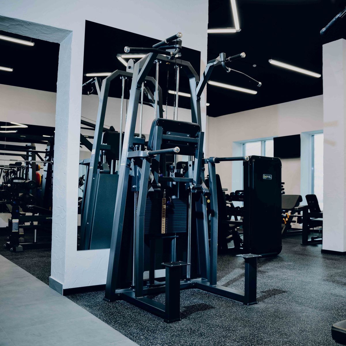 Система нагрузки – тросовая, с весовым стеком 100 кг. Весовой стек выполнен из стальных плит с порошковым покрытием.