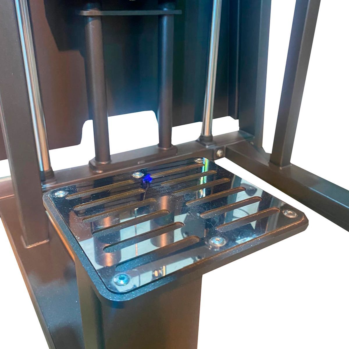 Конструкция установлена на опорных ножках с резиновыми подпятниками, предотвращающими смещение и повреждение напольного покрытия.