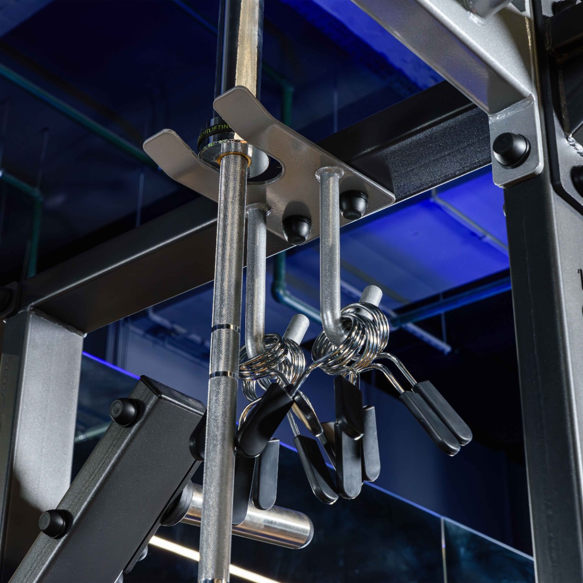 Страховочный упор имеет размеры ВШД 280х730х115 мм. Рама страховочного упора изготовлена из стального листового металла толщиной 8 и 5 мм и стальной профильной трубы 80х80х3 мм. Ось рамы страховочного упора изготовлена из стального круга диаметром 25 мм. Конструкция рамы упора обеспечивает надежную, быструю фиксацию упора на стойке, а винтовой фиксатор позволяет плотно прижать упор к стойке. Наличие на упоре накладки из монолитного поликарбоната оберегает гриф от повреждений. Все листовые детали и детали из трубы изготовлены на высокоточном лазерном оборудовании. В комплекте 2 упора (пара).
