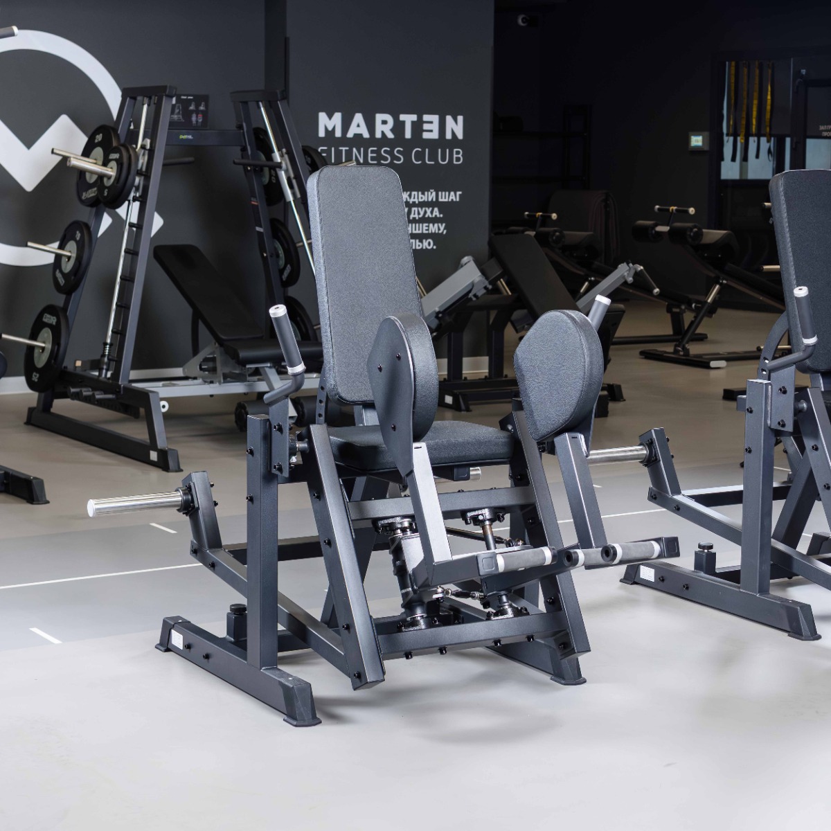 Тренажер оборудован защитными пластиковыми подпятниками для обеспечения устойчивости и предотвращения механических повреждений напольного покрытия.