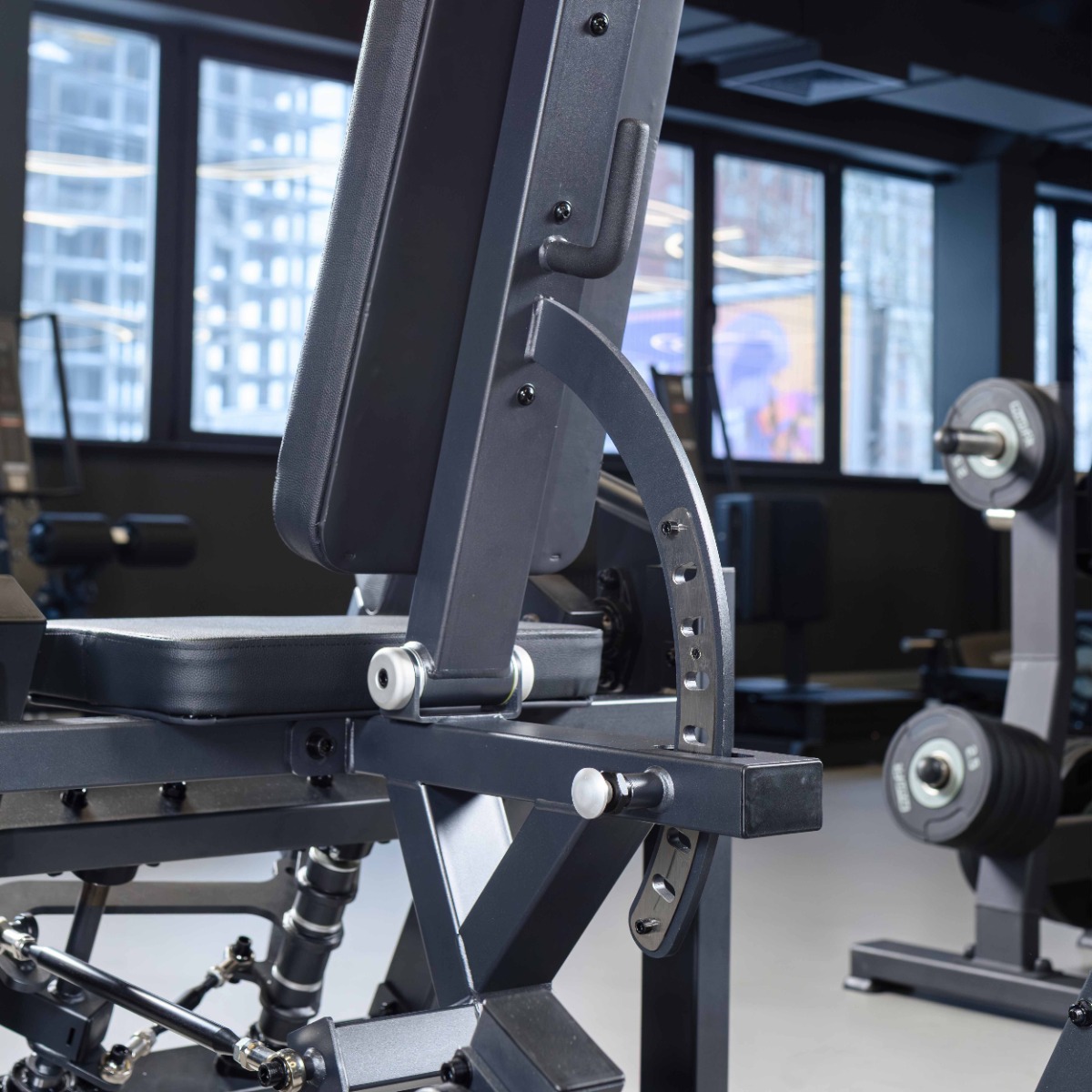 Два хромированных накопителя для работы со свободными весами длиной 270 мм изготовлены из толстостенной стальной трубы диаметром 50 мм. На основании накопителей установлены резиновые отбойники шириной 28 мм для предотвращения соприкосновения дисков с рамой и амортизации при установке свободных весов. На торцах накопителей установлены заглушки из пластика.
