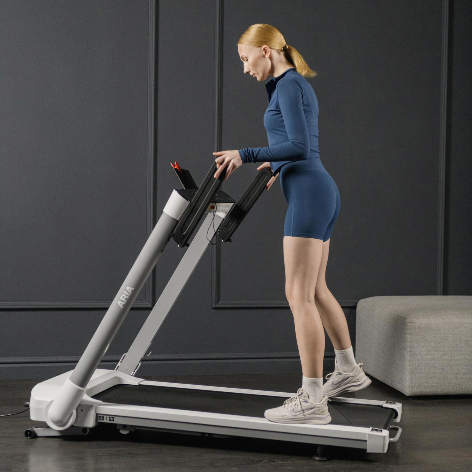 Мощный двигатель Hartvoll™ 2,75 л.с. обеспечивает невероятно плавный и стабильный разгон в широком диапазоне скоростей от 1 до 16 км/ч, что позволяет с одинаковым комфортом заниматься как спокойной ходьбой, так и интенсивным бегом. При этом после тренировки дорожка легко превращается в компактный предмет интерьера — благодаря особой системе складывания и вертикального хранения она занимает всего 25 см в толщину, органично вписываясь даже в самое ограниченное пространство.