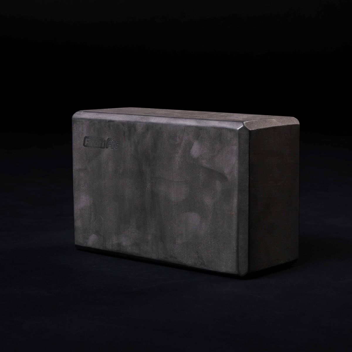 Опорный блок для занятий йогой, прямоугольной формы, черного цвета, сплошной конструкции без отверстий и полостей. Поверхность не скользящая, отлично держащая упор. Могут использоваться все три стороны блока, углы которого скошены для удобства хвата.