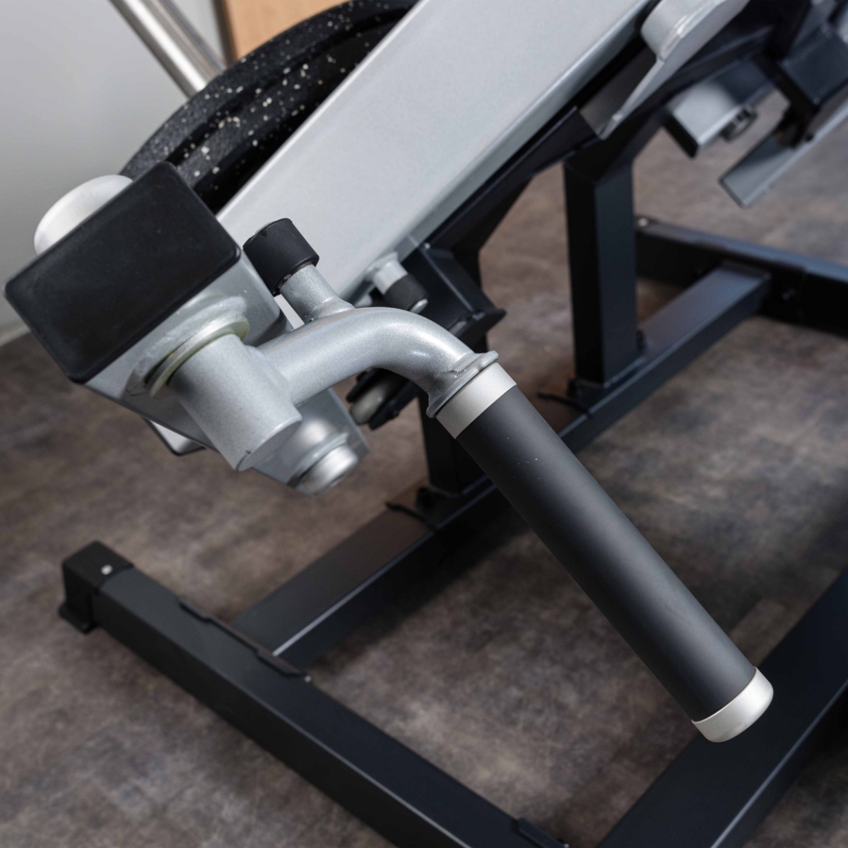 Накопители для работы со свободными весами оборудованы кольцами из плотной резины для предотвращения соприкосновения дисков с рамой тренажера.