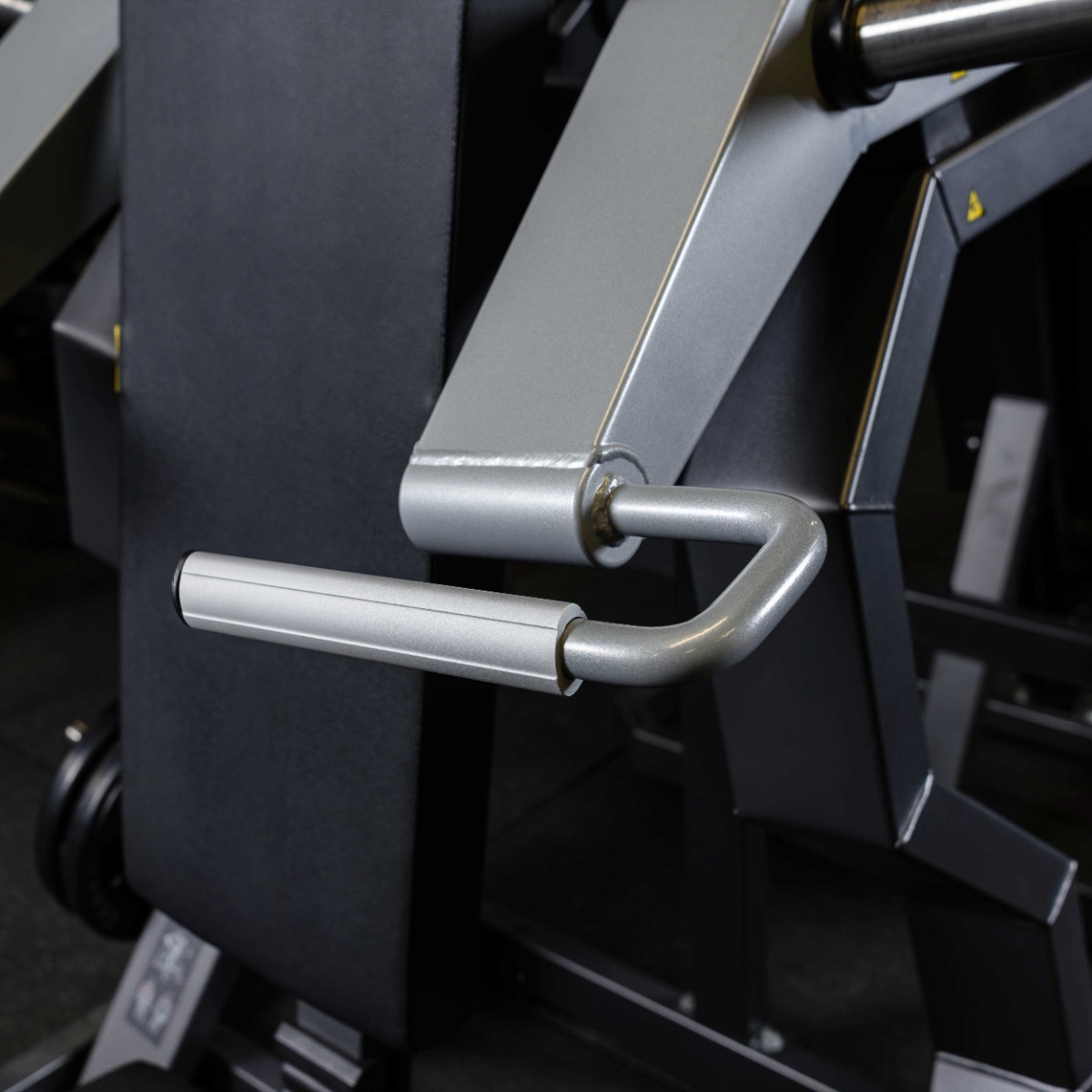 На подвижных рычагах для работы со свободными весами установлено два литых хромированных накопителя из толстостенной стальной трубы длиной 250 мм (рабочая длина 230 мм без учета заглушек и демпферов) для дисков с посадочным диаметром 50 мм. На торцах при помощи болтов закреплены металлические заглушки.