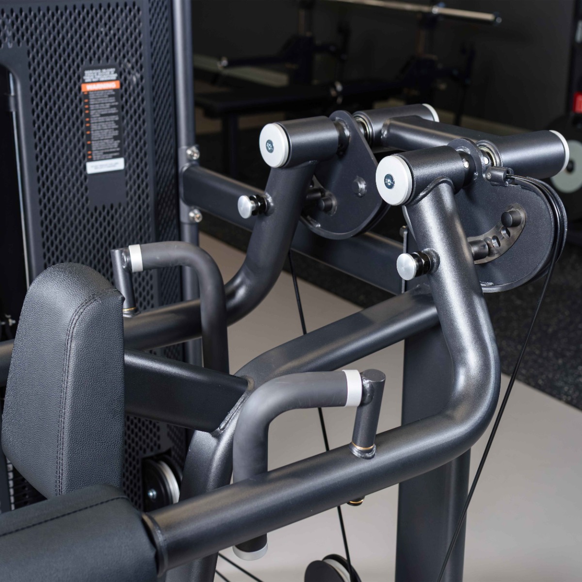 Прорезь в защитном кожухе грузоблока для доступа к регулировке нагрузки шлифованная с завальцованными внутрь гранями по всему периметру для безопасного доступа к весовому стеку и обеспечения дополнительной жёсткости рамы грузоблока.