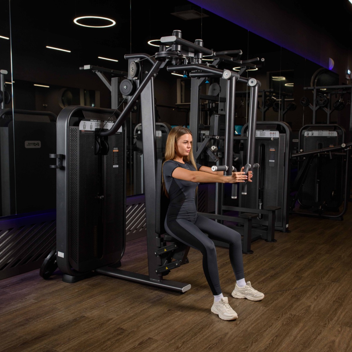 Комбинированный профессиональный тренажер для коммерческого использования E7007 Баттерфляй – задние дельты предназначен для изолирующих упражнений на большие грудные мышцы и задние дельтовидные мышцы.