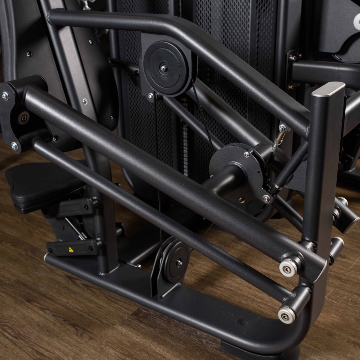 Прорезь в защитном кожухе грузоблока для доступа к регулировке нагрузки шлифованная с завальцованными внутрь гранями по всему периметру для безопасного доступа к весовому стеку и обеспечения дополнительной жёсткости рамы грузоблока.