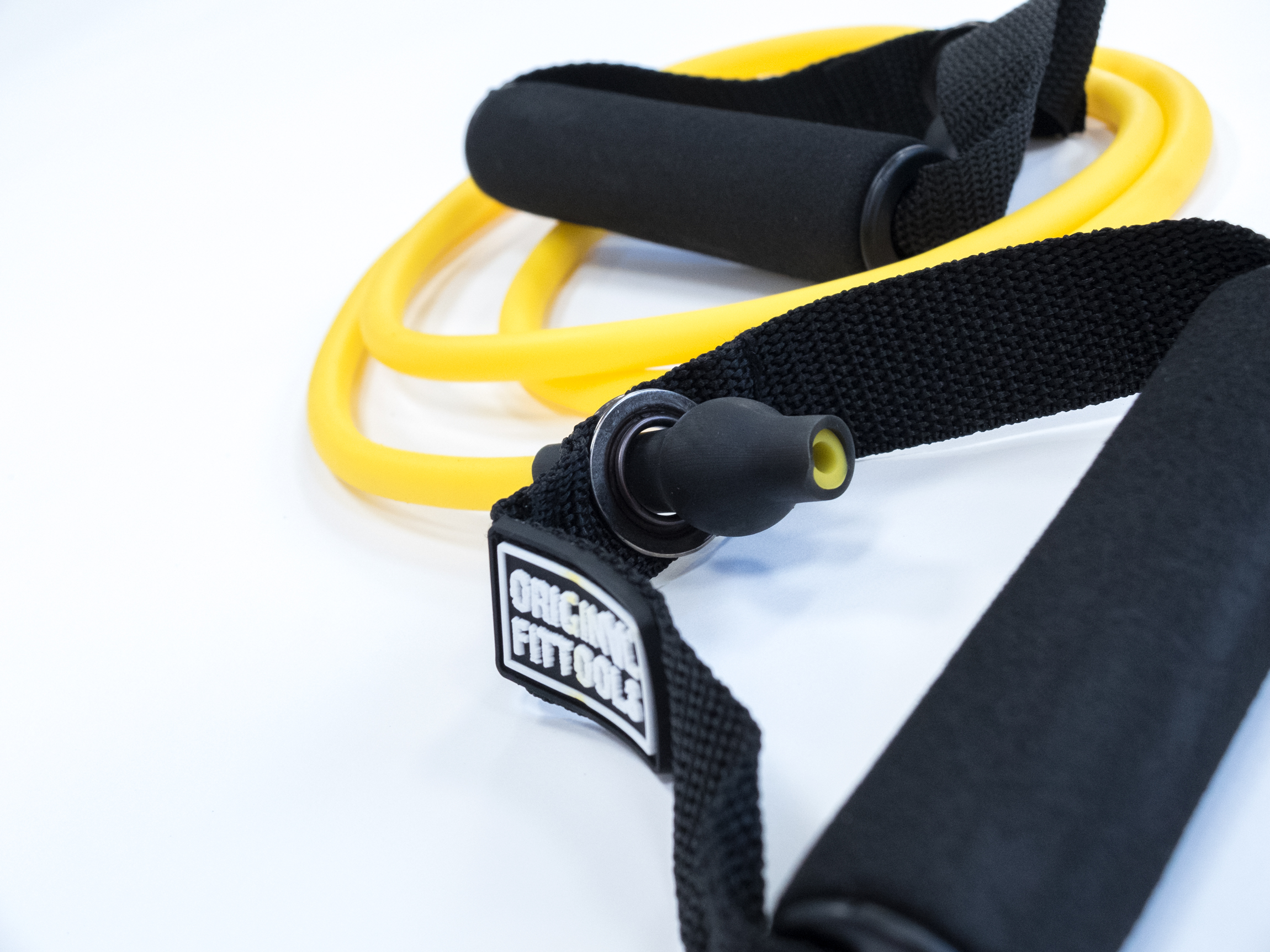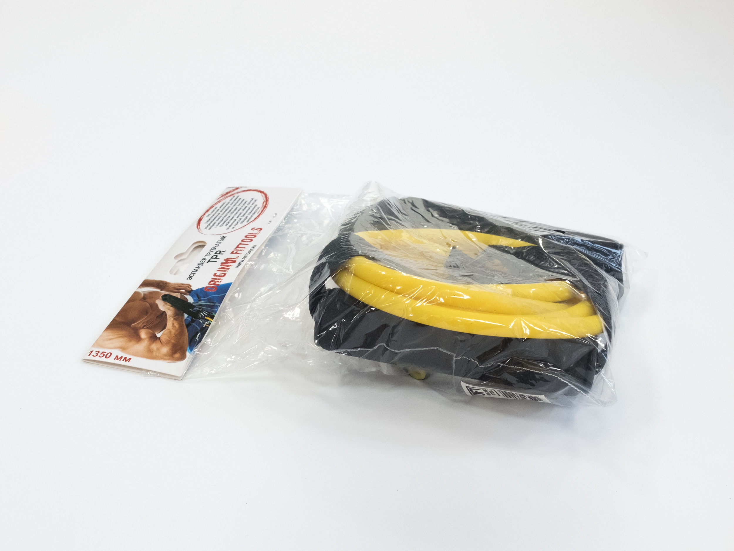 Для индивидуальных занятий трубчатый эспандер с ручками Original FitTools жёлтого цвета размером 1350х5х9 мм