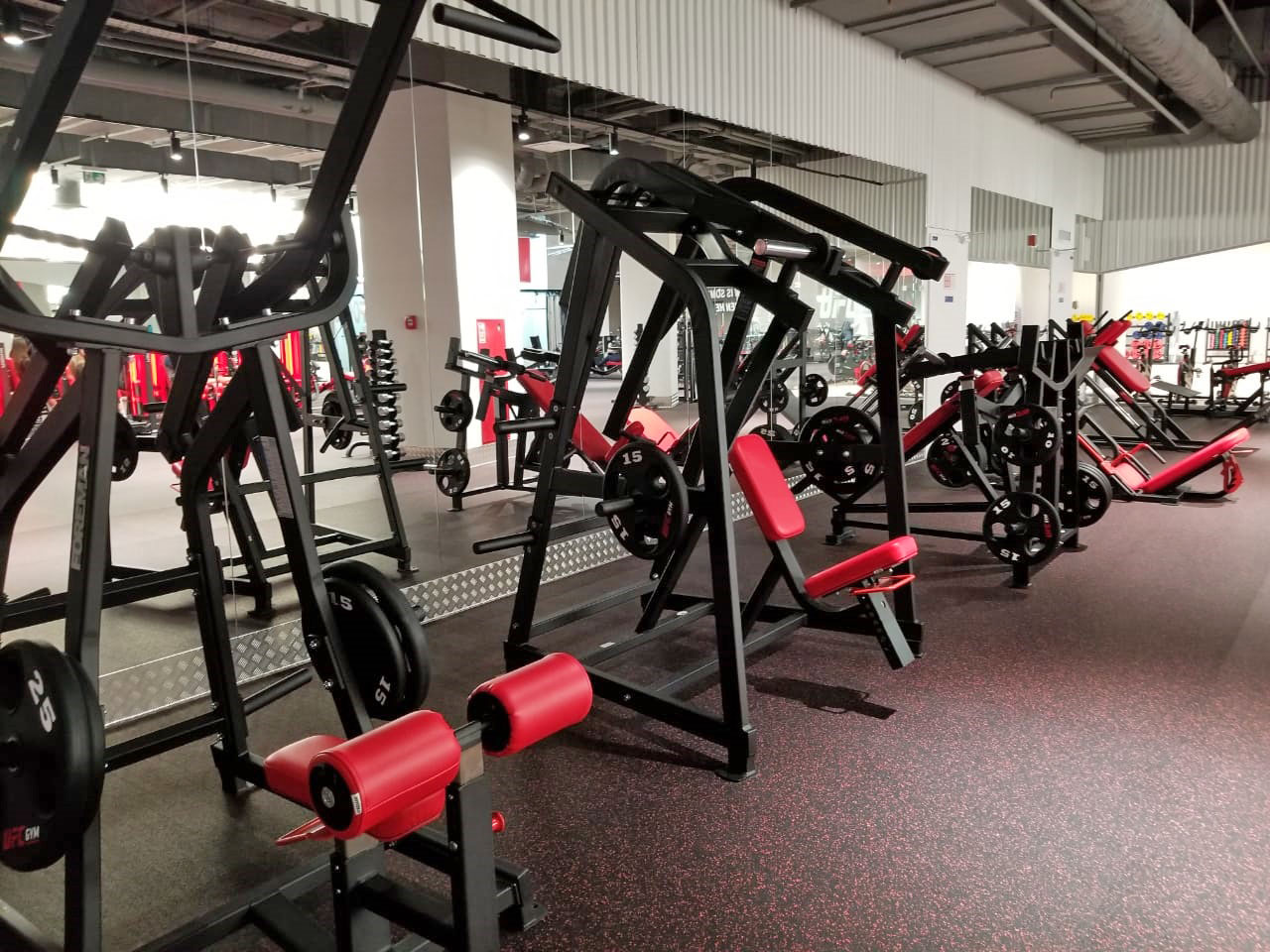 - Тренажер оснащен тремя парными держателями дисков.