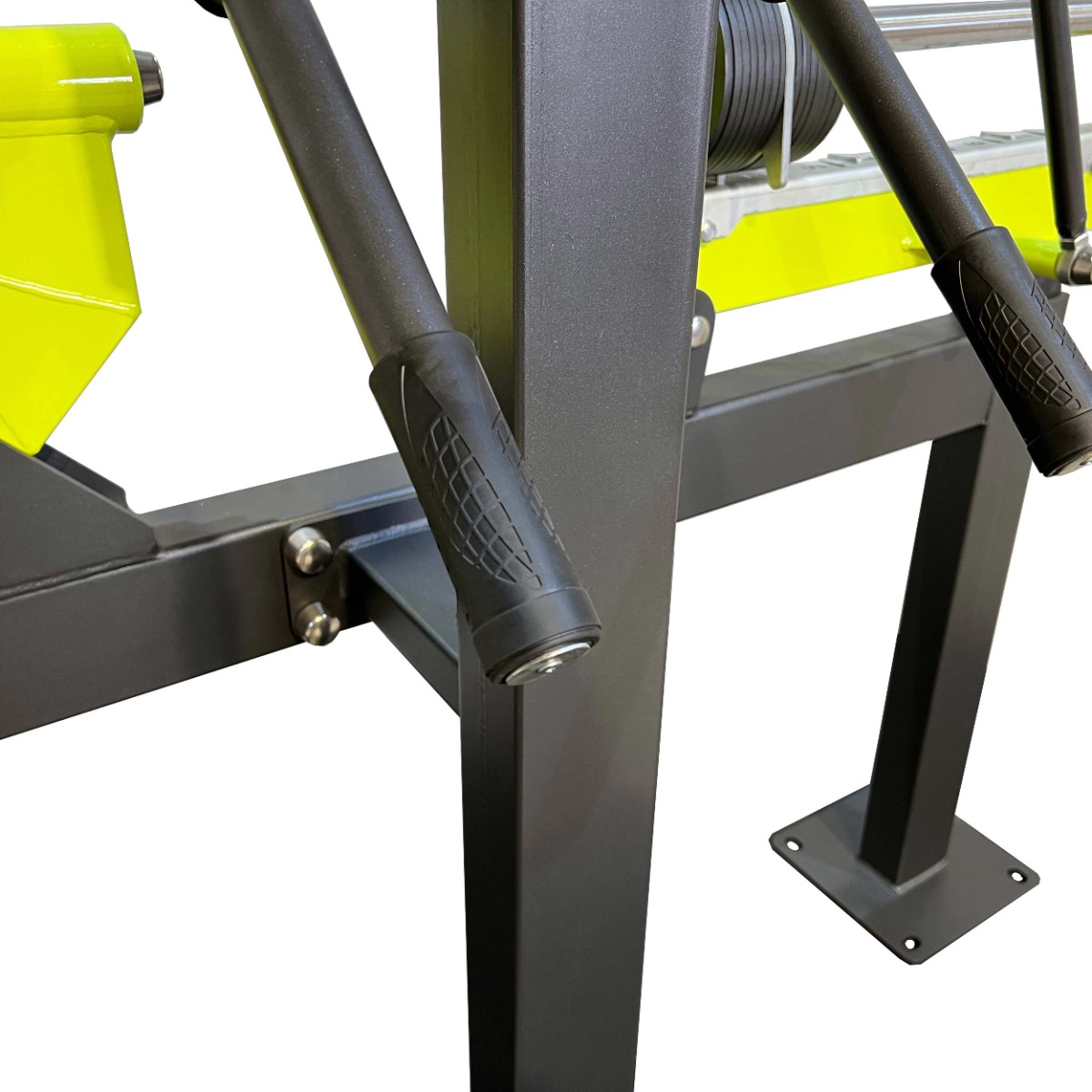 Надёжность и прочность разъёмных соединений конструктивных элементов тренажёра обеспечиваются за счёт использования высококачественного оцинкованного крепежа, выступающие части которого закрыты металлическими защитными колпачками.
