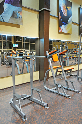 - Тренажер оборудован стальными опорными ножками с отверстиями для фиксации к полу.