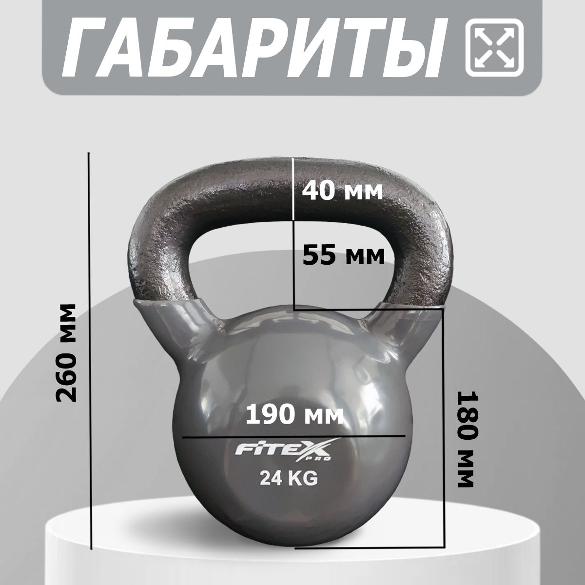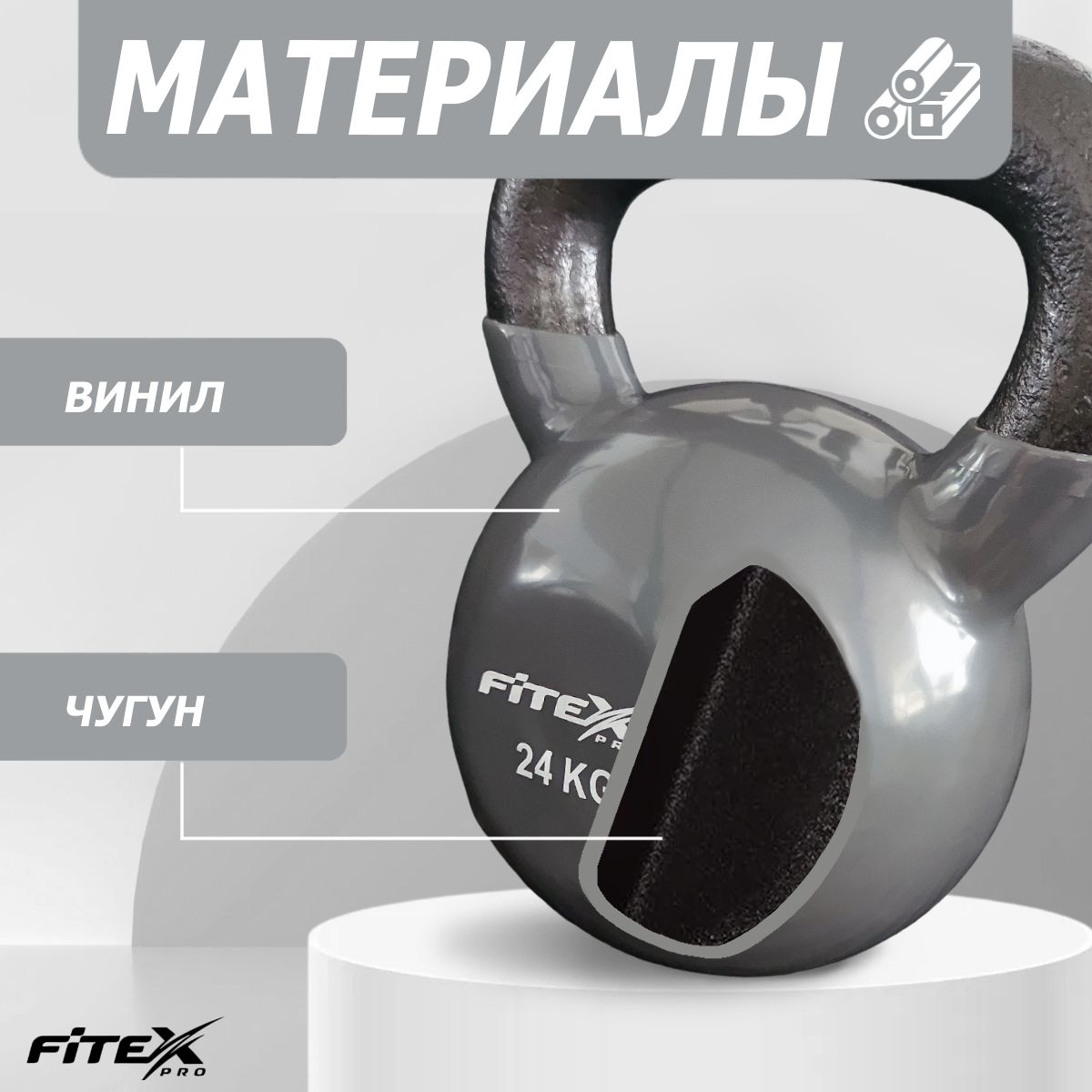 Гиря FITEX PRO сделана из чугуна и имеет плотное виниловое покрытие, которое не окрашивает стены и пол, снизит шум и убережет кожу рук от раздражения.