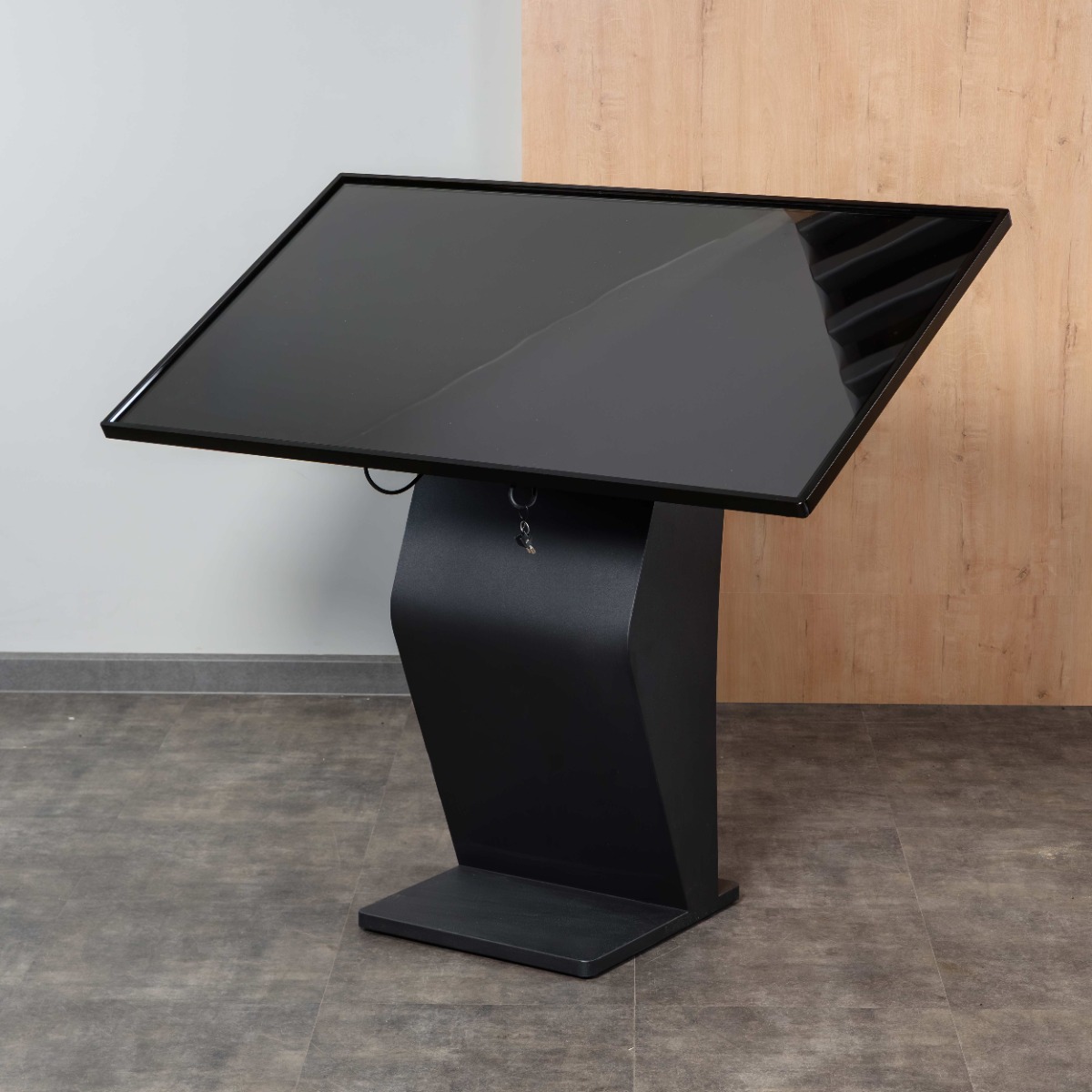 Мониторный блок фиксируется на стойке через усиленное крепление с замком, что исключает расшатывание и ограничивает доступ к коммуникациям.