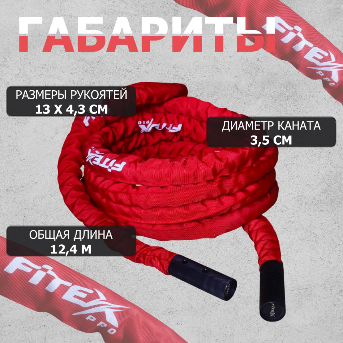 Новый тренировочный канат убран в специальный яркий и прочный чехол. Он защищает канат от внешних воздействий: протирания, распушения и любой другой деформации.