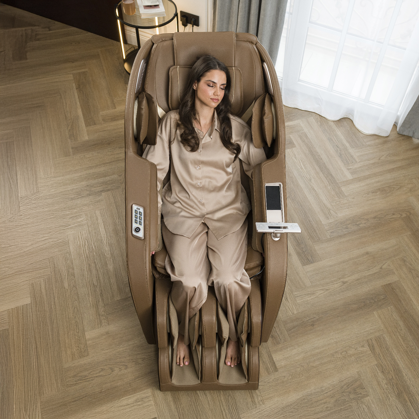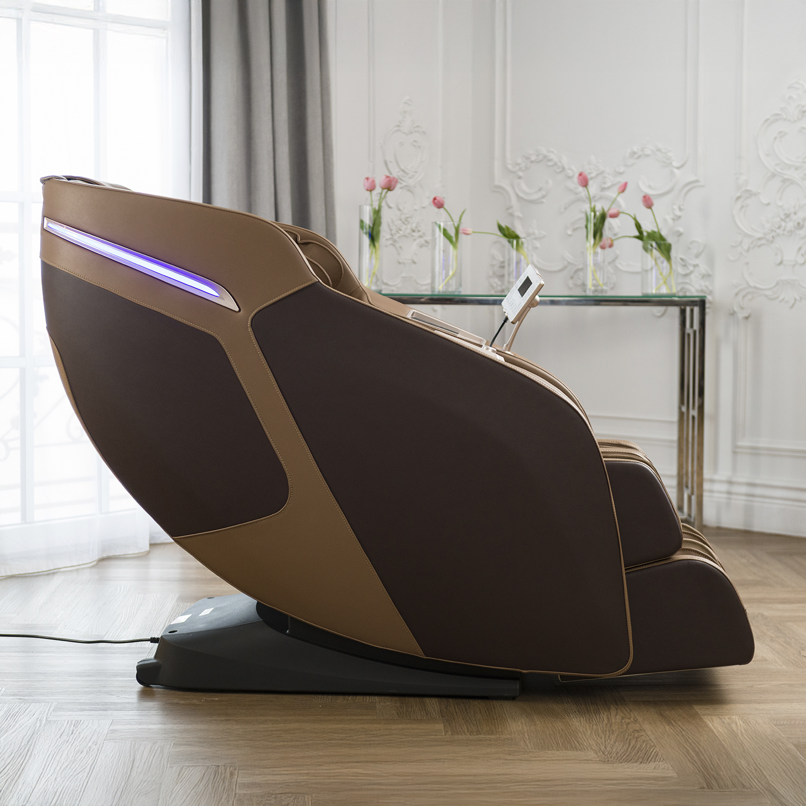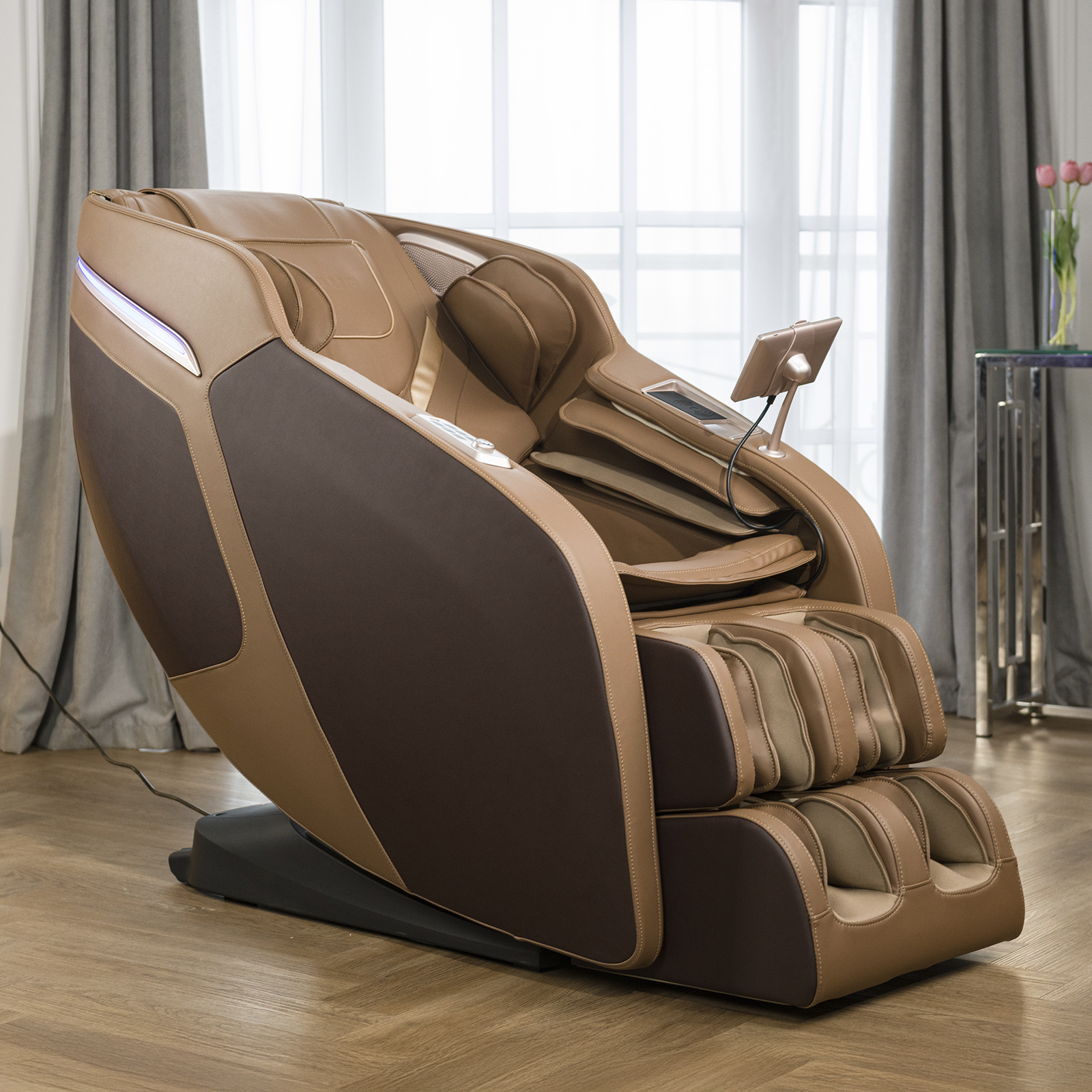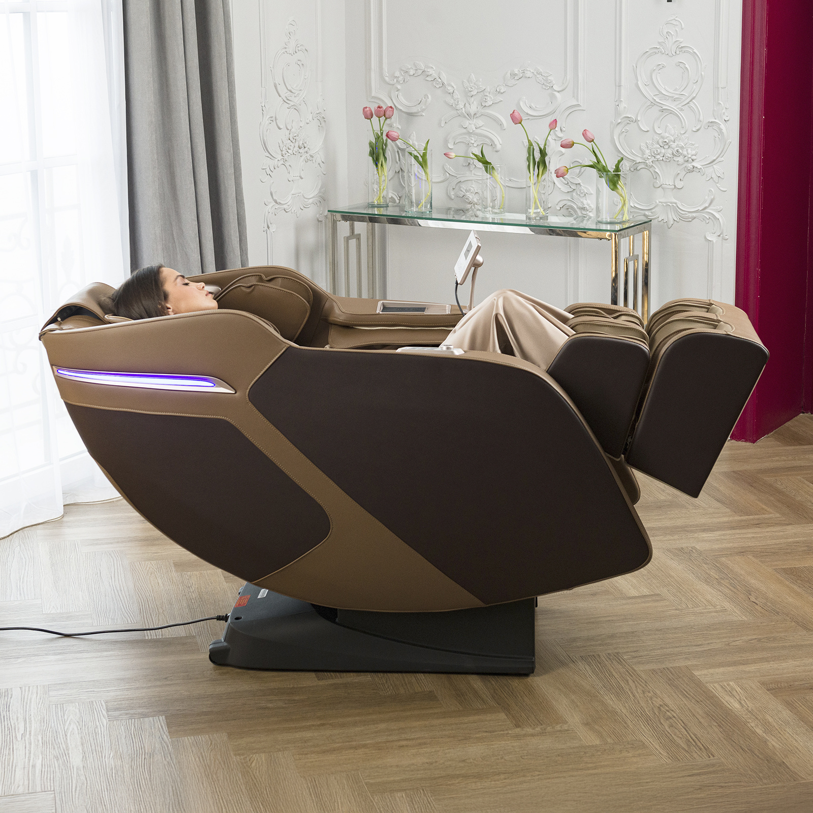 Электрическое массажное кресло для дома Orlauf Jazz сочетает в себе продвинутую систему роликового и воздушно-компрессионного массажа. Модель предлагает профессиональный уровень массажа с широкими возможностями персонализации.