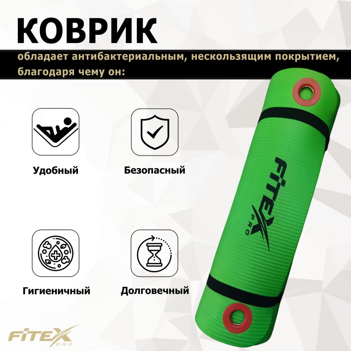 Мат гимнастический 180х60х1.25 см FITEX PRO изготовлен из вспененного материала поливинилхлорида.