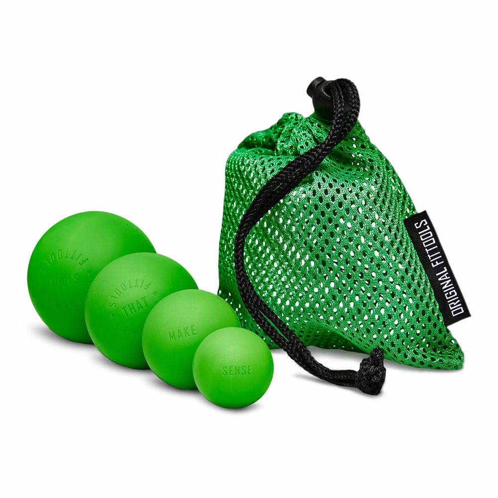 Этот набор включает в себя четыре массажных мяча разных диаметров: 6,3 см, 5 см, 4 см и 3 см. Массажные мячи изготовлены из высококачественного литого силикона. Каждый мяч из комплекта уникален по размеру и предназначен для эффективной и разнообразной проработки мышц и фасций тела. Мячи надежно удерживаются телом и не выскальзывают во время применения.