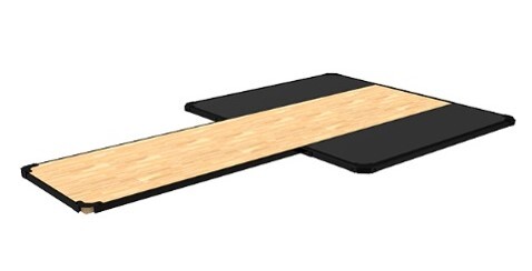 Помост представляет из себя разборную конструкцию с резиновой плиткой и фанерным настилом.