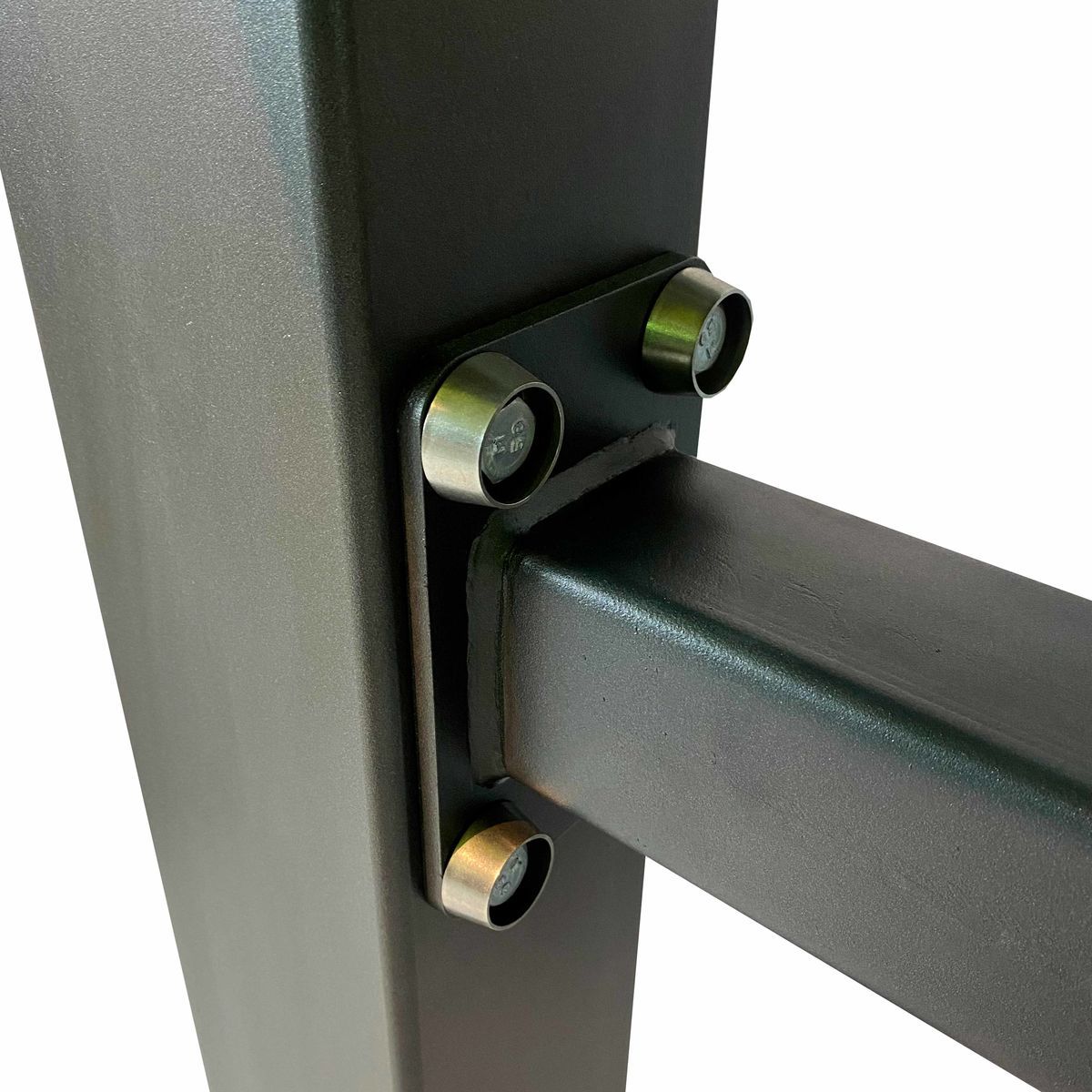 Надёжность и прочность разъёмных соединений конструктивных элементов тренажёра обеспечиваются за счёт использования высококачественного оцинкованного крепежа, выступающие части которого закрыты металлическими защитными колпачками.