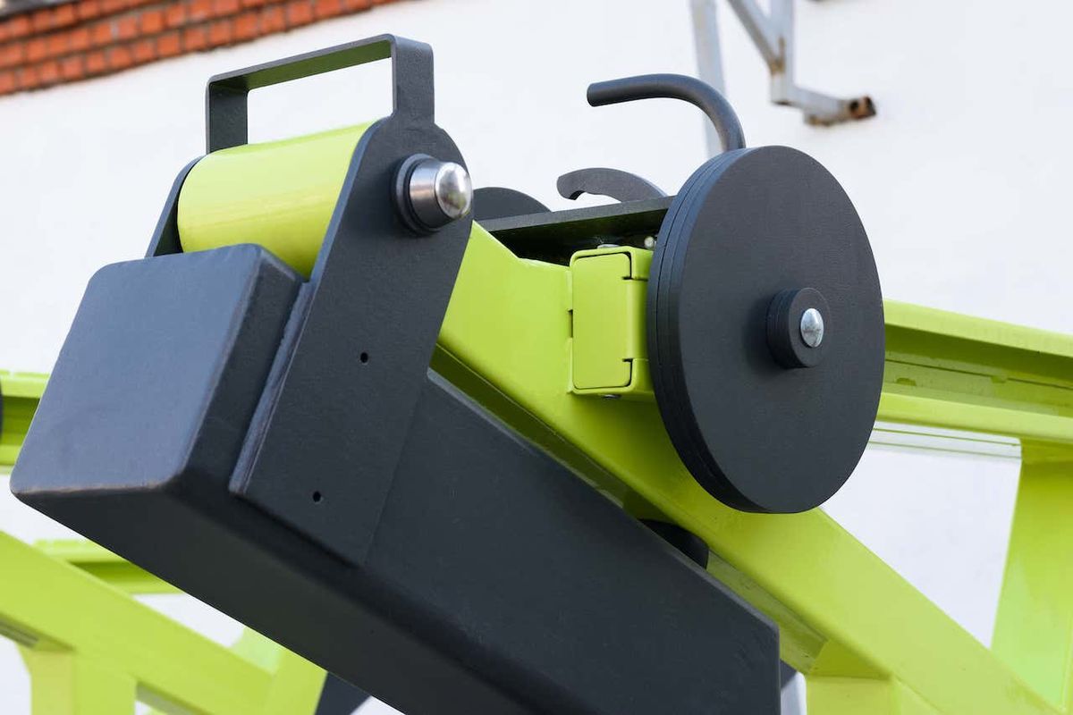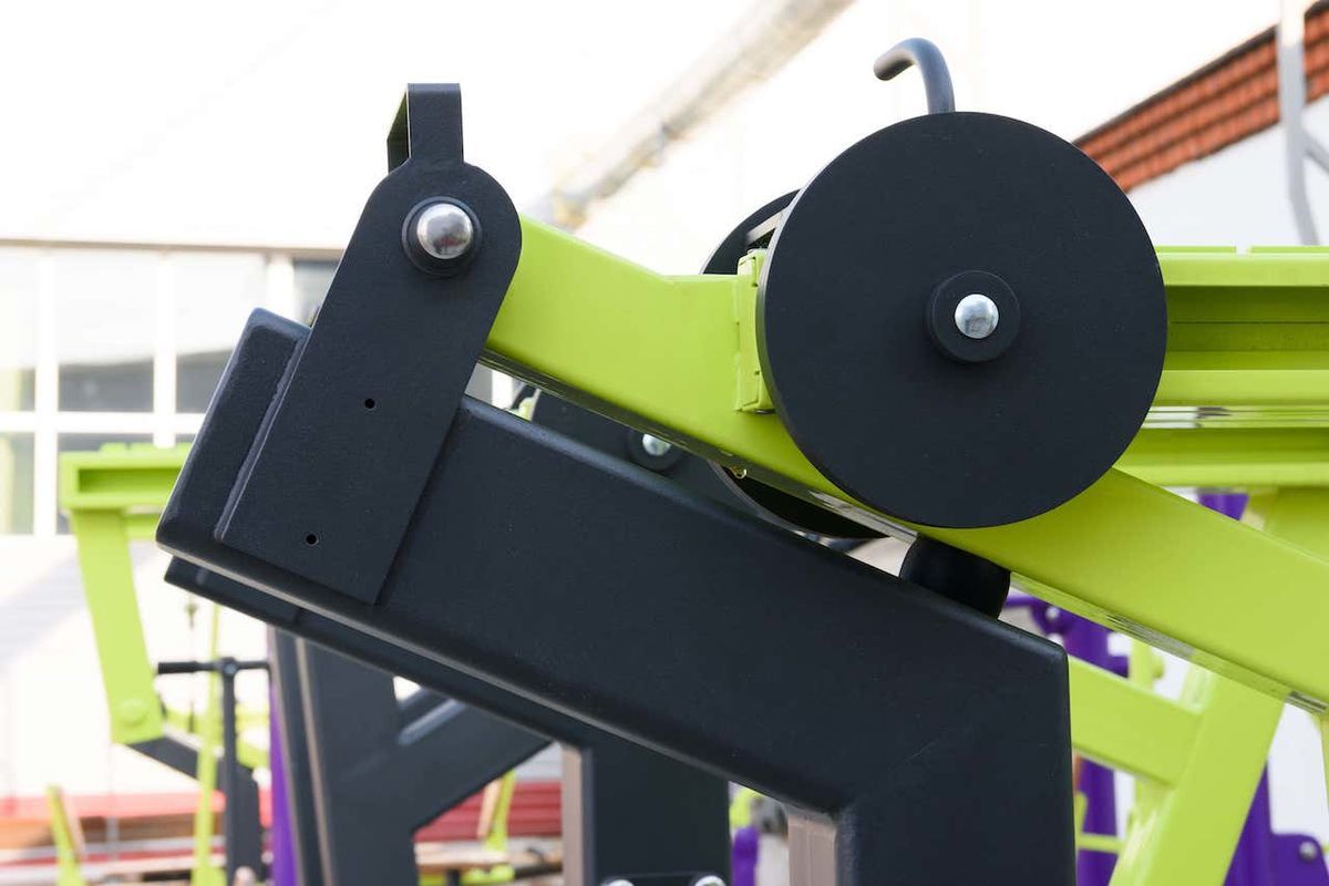 Подвижные рычаги оснащены передвижными грузовыми блоками из листового металла толщиной 8 мм, перемещающимися на роликах диаметром 75 мм с фиксацией по зубчатой рейке.