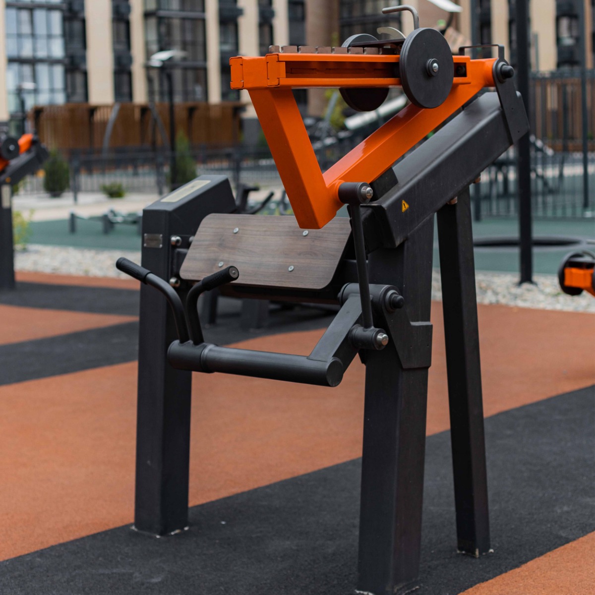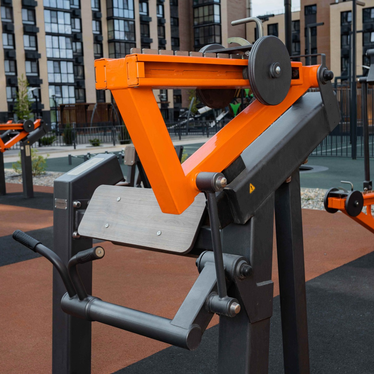 Надёжность и прочность разъёмных соединений конструктивных элементов тренажёра обеспечиваются за счёт использования высококачественного оцинкованного крепежа, выступающие части которого закрыты металлическими защитными колпачками.