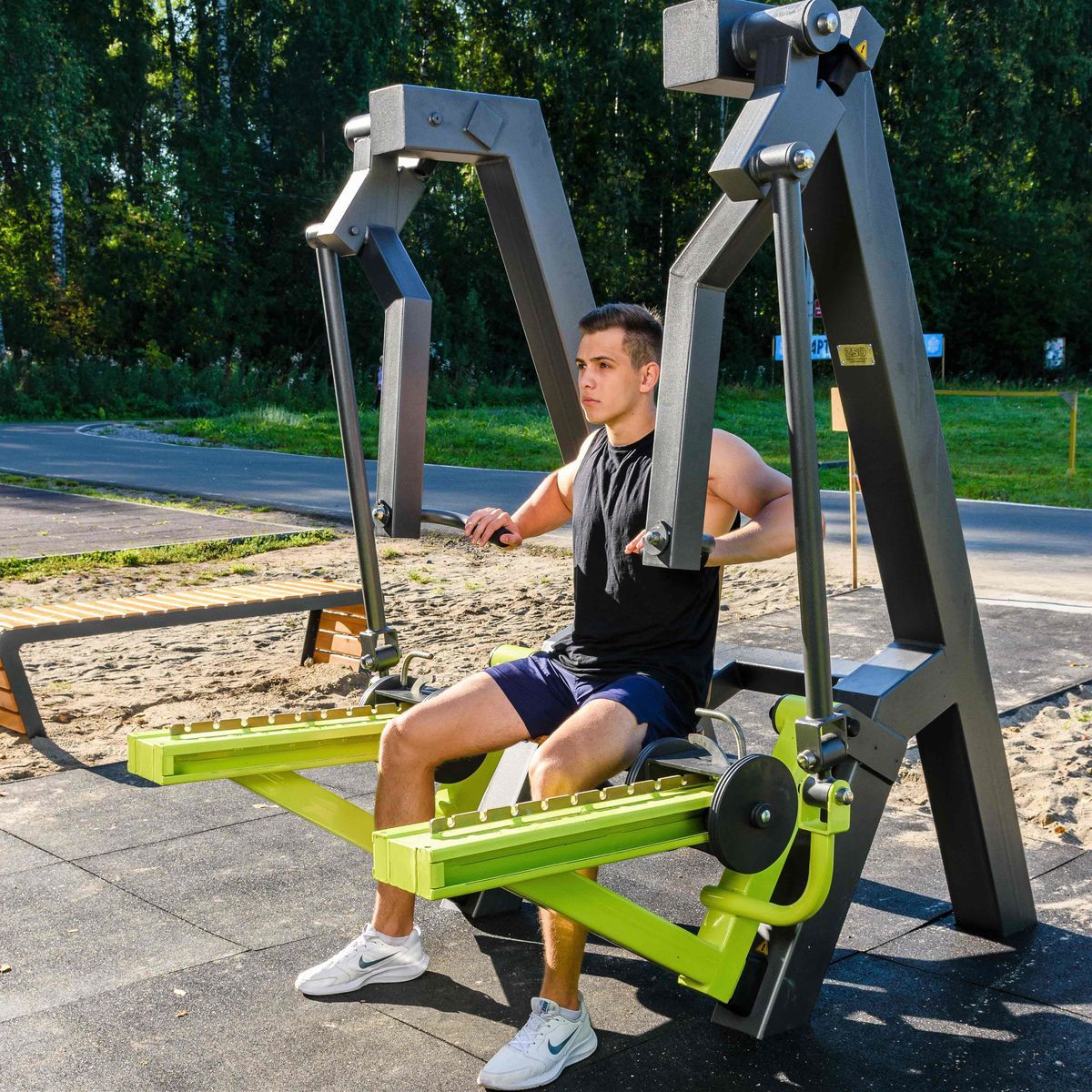 Power-1812.1 Уличный тренажер Жим сидя с переменной нагрузкой ZAVODSPORTA