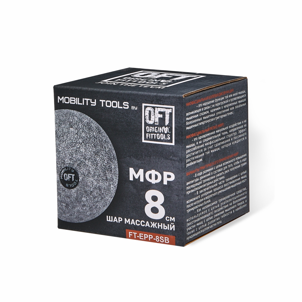 Мяч OFT 8 см подходит для спины, ягодиц, бедер, ног, а также для выполнения профилактических и реабилитационных упражнений, позволяя широко охватывать зону воздействия и снижая риск повреждения тканей.
