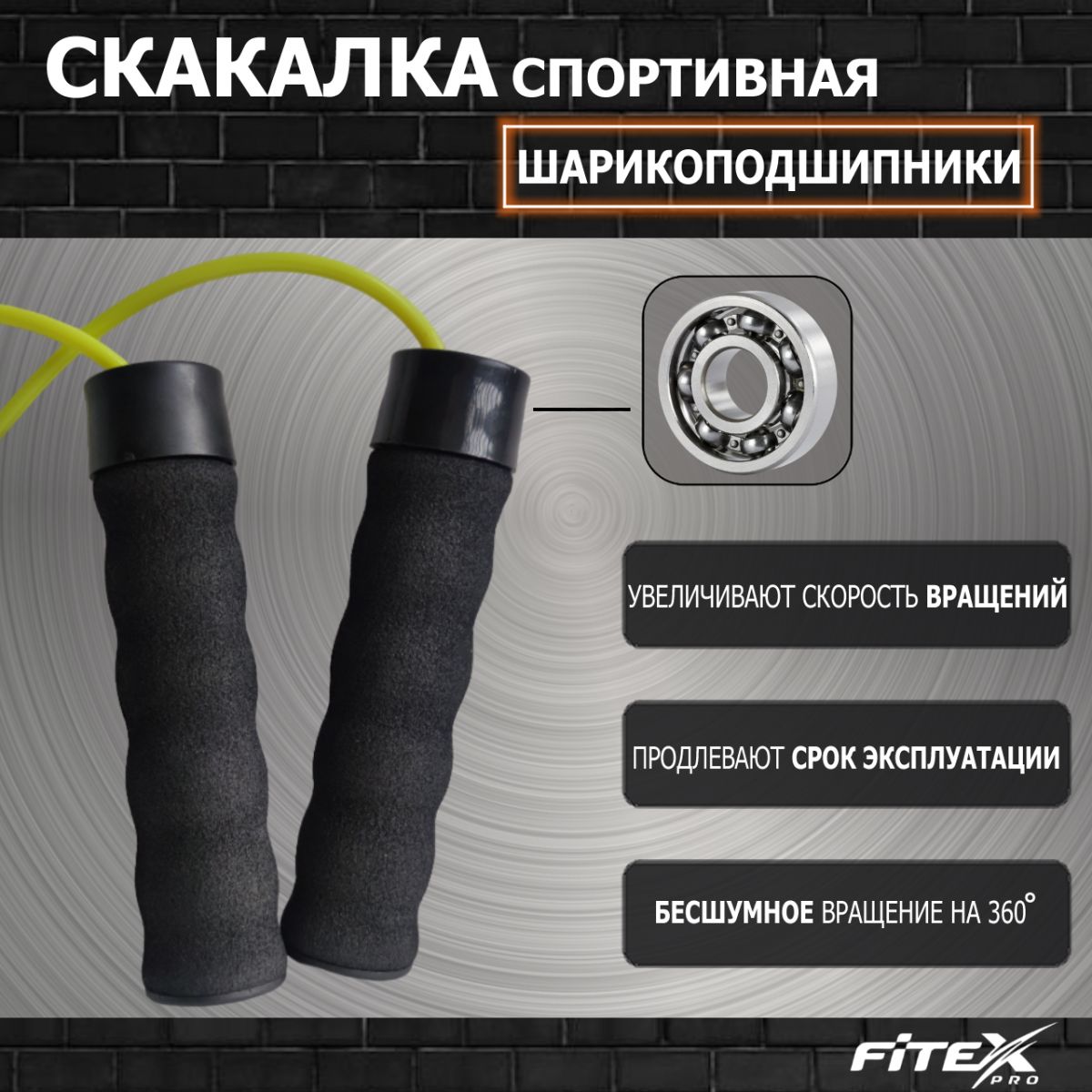 Скакалка с утяжелением на подшипниках FITEX PRO (2750 х 5 мм, ПВХ) отличается от простой скакалки наличием металлических стержней в ручках весом 2 х 250грамм.