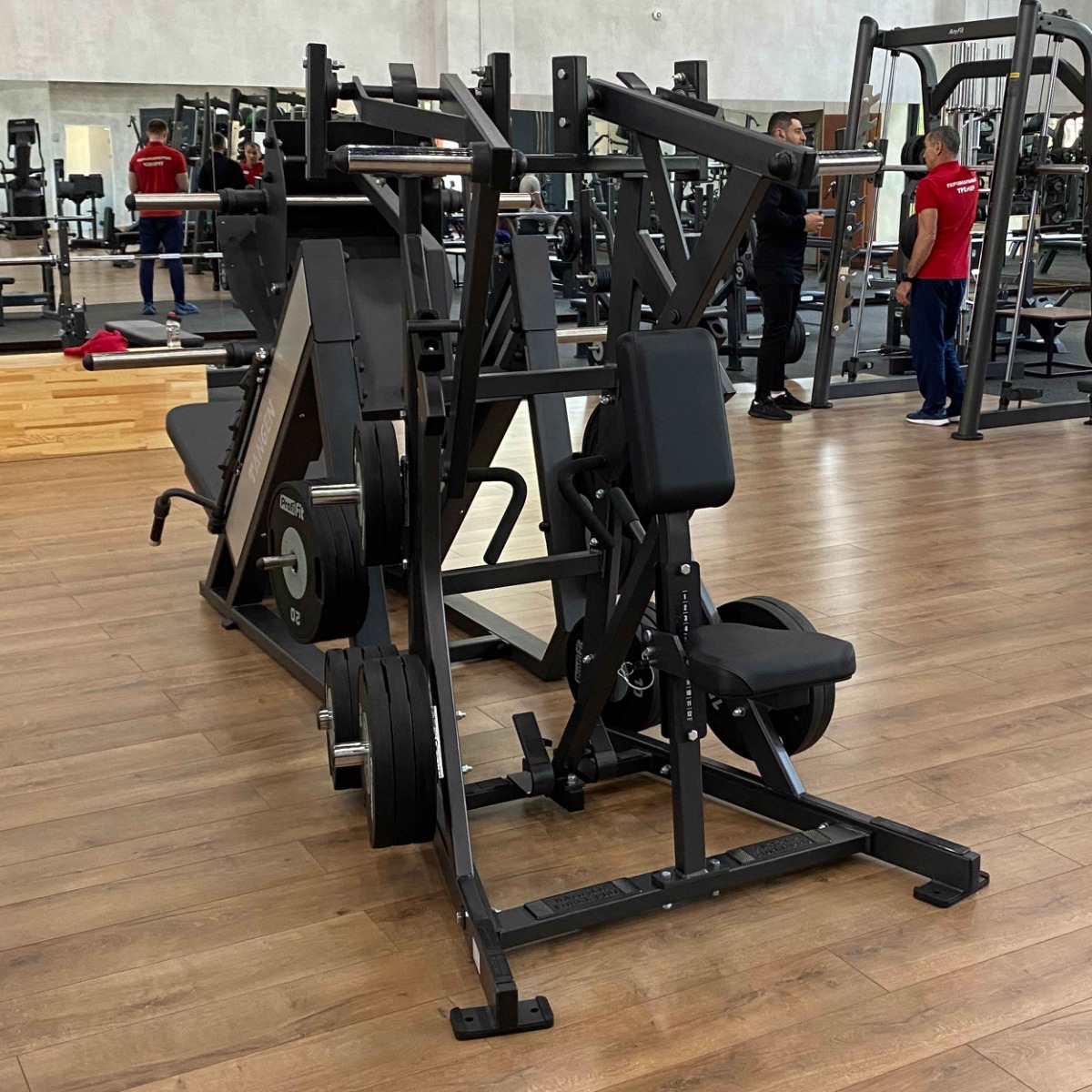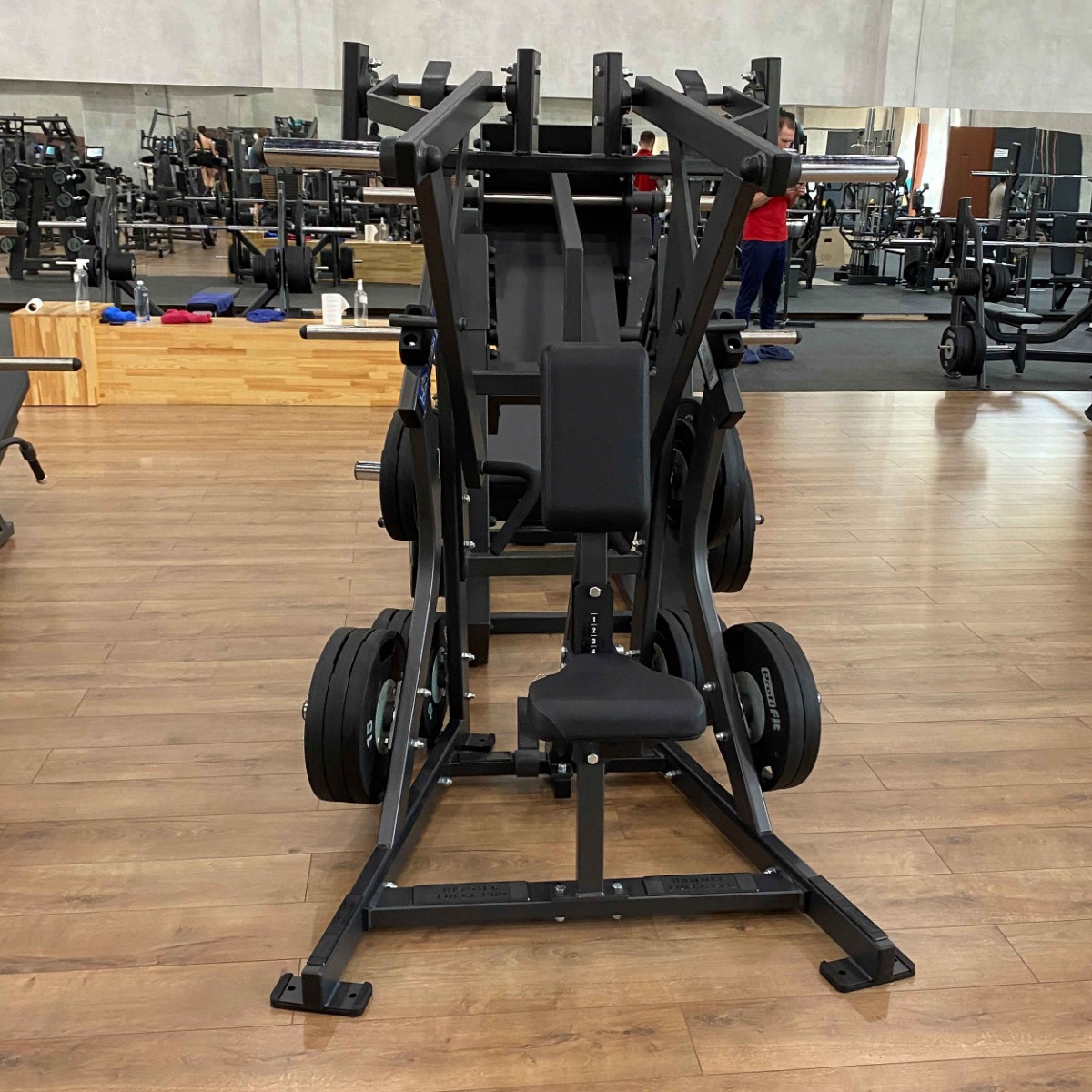 Количество хромированных накопителей для хранения свободных весов: шесть накопителей из толстостенной стальной трубы диаметром 48 мм. Максимальный вес на накопитель: 100 кг.