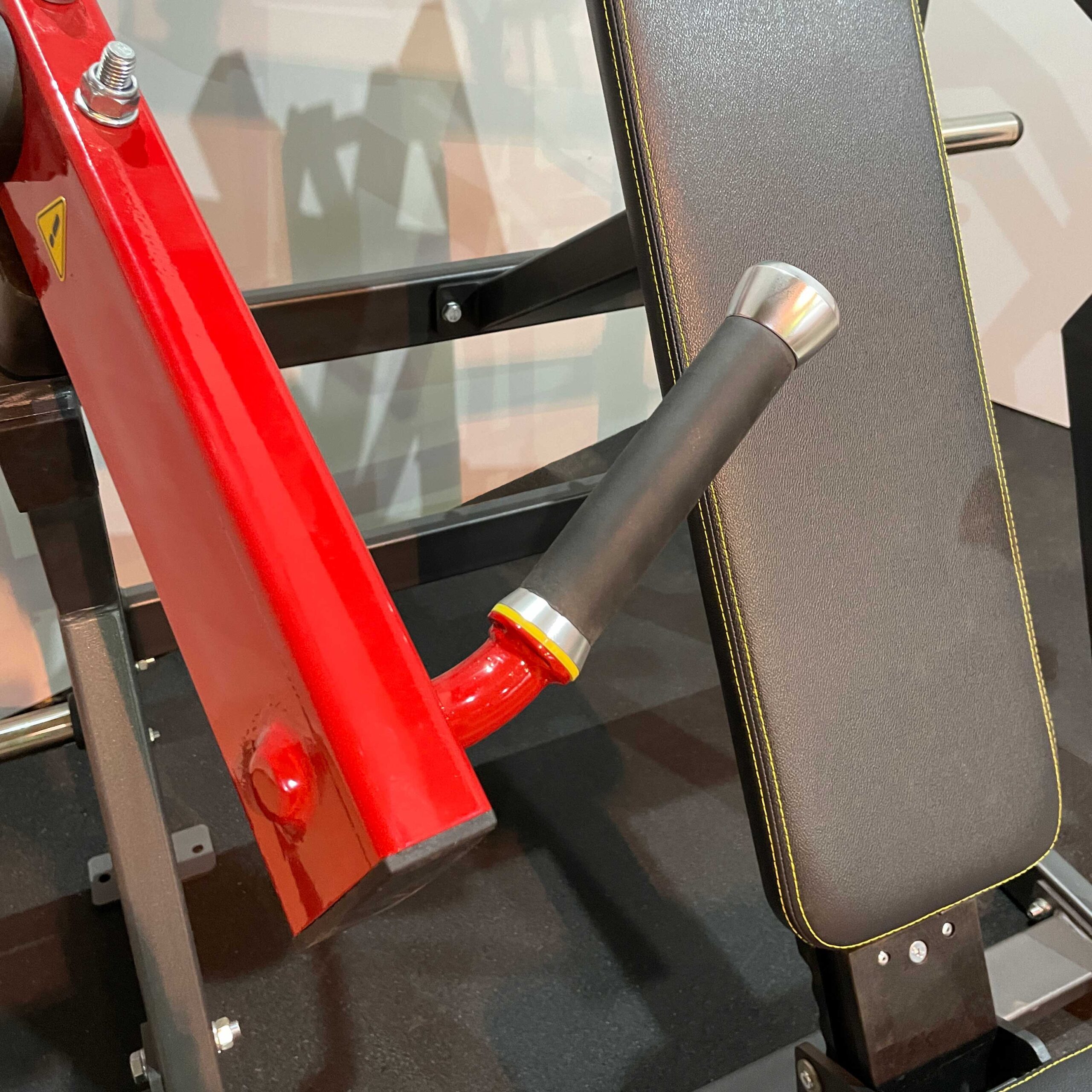 На раме закреплены металлические рубчатые пластины для защиты тренажера от износа и спортсмена от скольжения при выполнении упражнения.