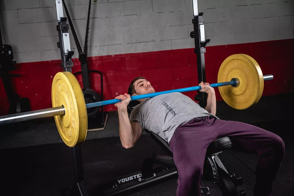 В этой версии стоек мы доработали конструкцию опоры, фиксирующие болты и изменили конструкцию нижней пары крюков, которые теперь по форме повторяют верхние. Благодаря этому выполнять жим лёжа стало гораздо удобней. Стойки стали жестче и устойчивее за счет того, что мы убрали механизм регулировки ширины. Теперь внутренняя ширина фиксированная – 1100мм. Механизм фиксации – болт с пружинным фиксатором. Во время тренировок с большими весами его можно закрутить, тем самым увеличив жёсткость фиксации. Но для ежедневных тренировок рядовых клиентов это не обязательно. На стойках 4 таких болта: 2 на регулировку высоты стоек и 2 на страховочные упоры. Верхние и нижние крюки покрыты пластиком, для предотвращения повреждения насечки грифа.