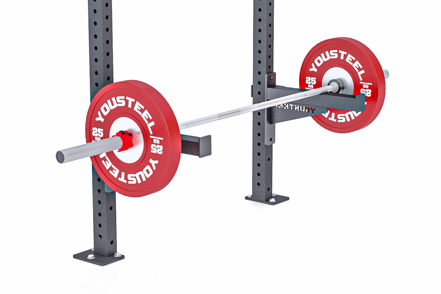 Что бы не повредить насечку рукояти грифа сверху на упоры установлен специальный высокопрочный пластик. Упоры предназначены для подстраховки атлета, чтобы на них можно было положить штангу. Они не предназначены для того, чтобы снаряд на них скидывали с большой высоты. Это может повредить как упор, так и стойку.