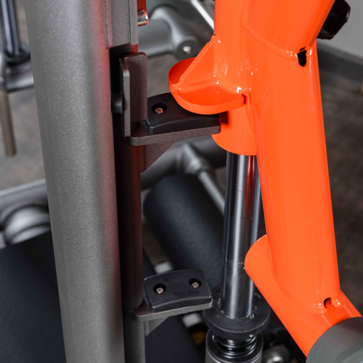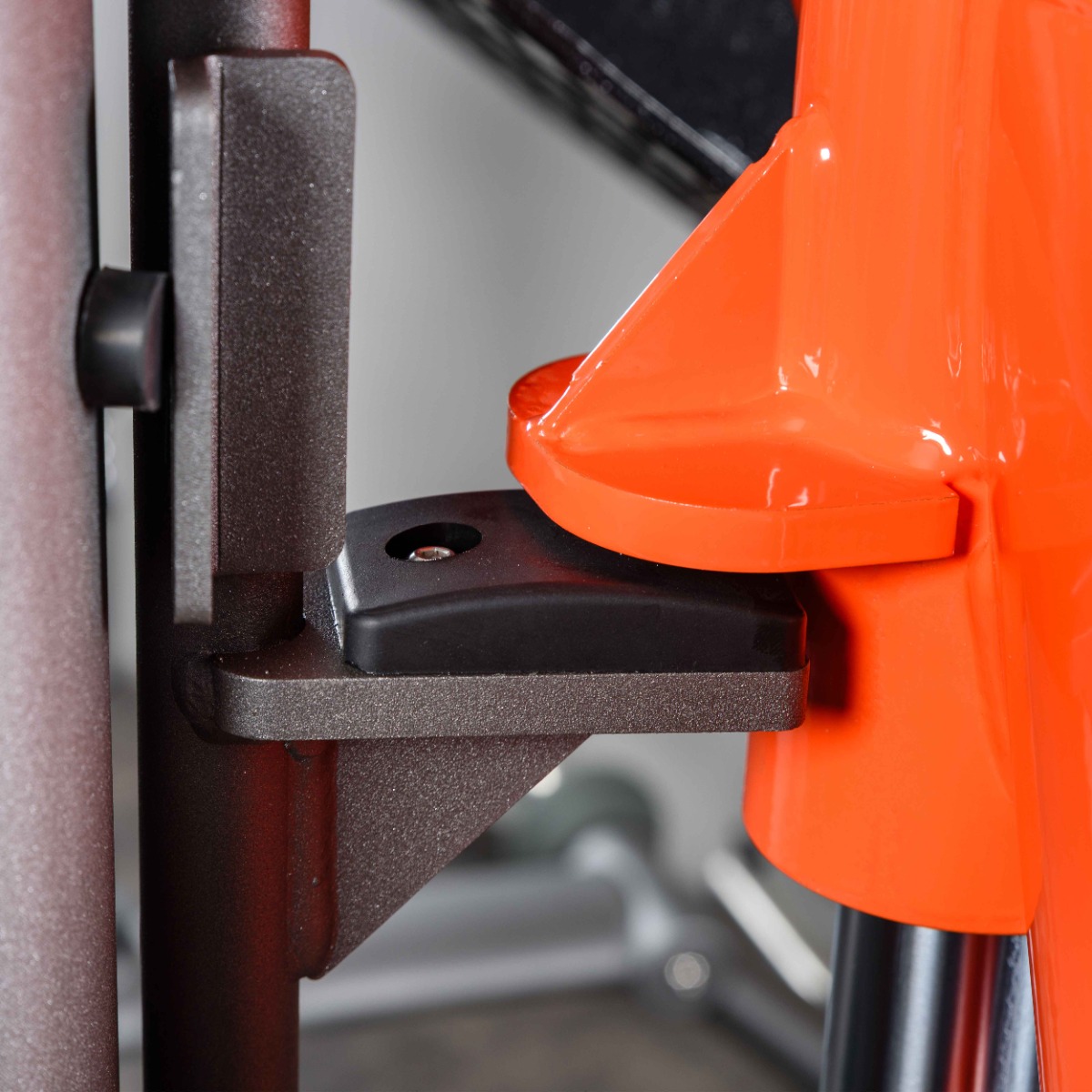 С обеих сторон тренажёра расположено по пять страховочных упоров, фиксирующих платформу на нужной высоте в случае снятия основных ограничителей движения (фиксаторов) платформы.
