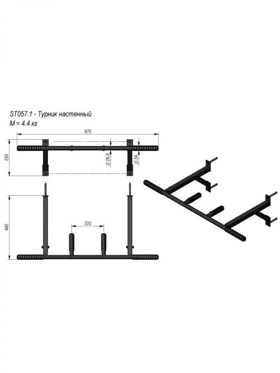 Турник настенный V-SPORT ST057.1, предназначен для выполнения основных упражнений на подтягивания: широкий хват, средний и узкий. Предусмотрено крепление, позволяющее закрепить тренажер на стену в четырех точках. Ростовые пределы ограничиваются лишь высотой установки турника, а весовые — 120 кг.