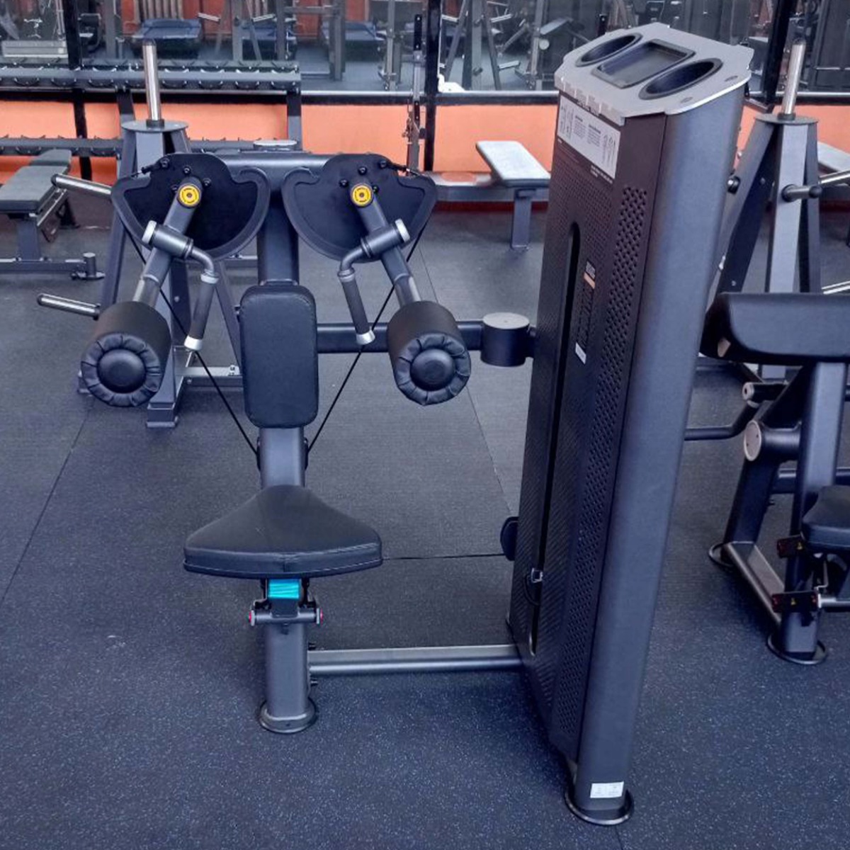 Прорезь в защитном кожухе грузоблока для доступа к регулировке нагрузки шлифованная с завальцованными внутрь гранями по всему периметру для безопасного доступа к весовому стеку и обеспечения дополнительной жёсткости рамы грузоблока.
