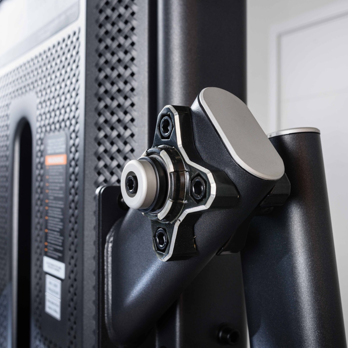 Прорезь в защитном кожухе грузоблока для доступа к регулировке нагрузки шлифованная с завальцованными внутрь гранями по всему периметру для безопасного доступа к весовому стеку и обеспечения дополнительной жёсткости рамы грузоблока.