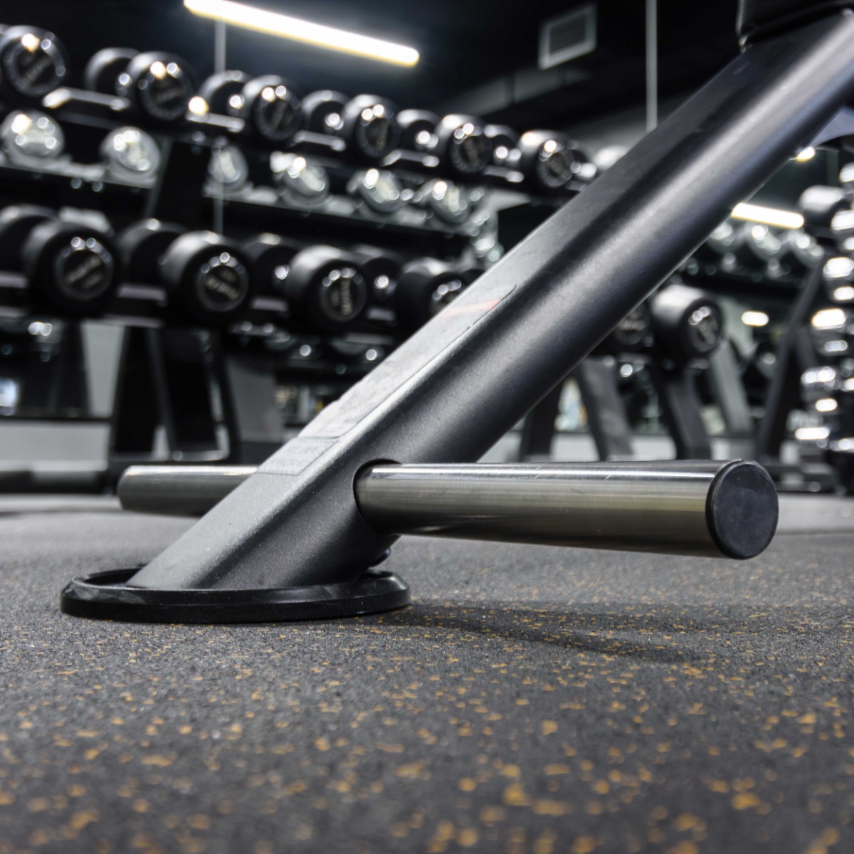 На скамье закреплен металлический пруток – опора для ног.