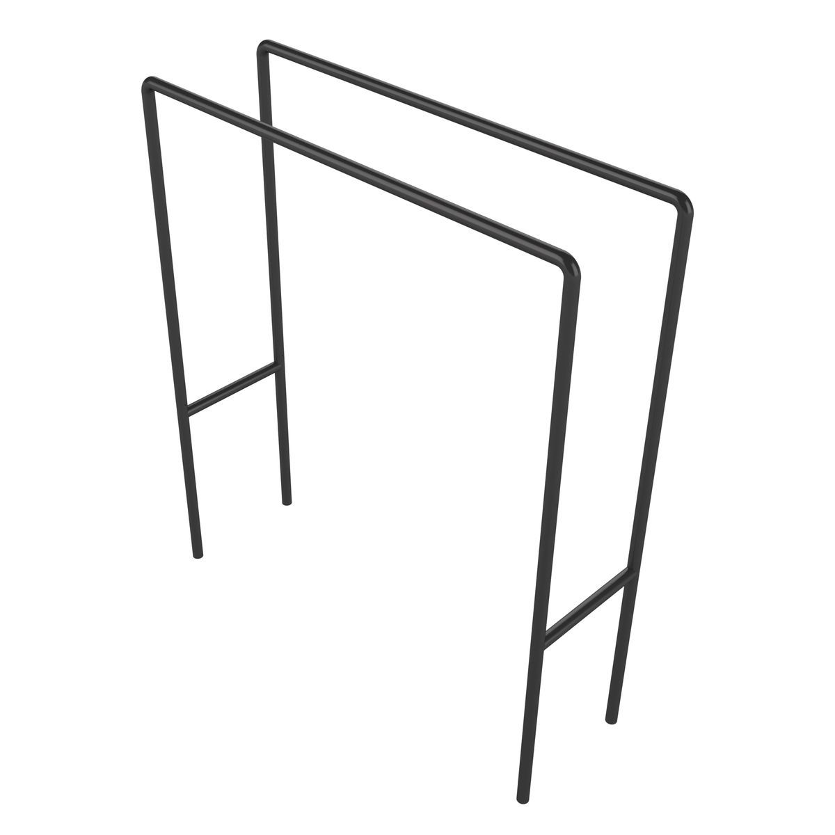 На торцах перекладин установлены металлические хомуты с болтовым соединением для фиксации к опорным столбам. Конструкция хомутов обеспечивает прочную посадку и равномерное распределение нагрузки, а самоконтрящиеся гайки и винты М10 предотвращают самопроизвольное ослабление креплений в процессе эксплуатации.